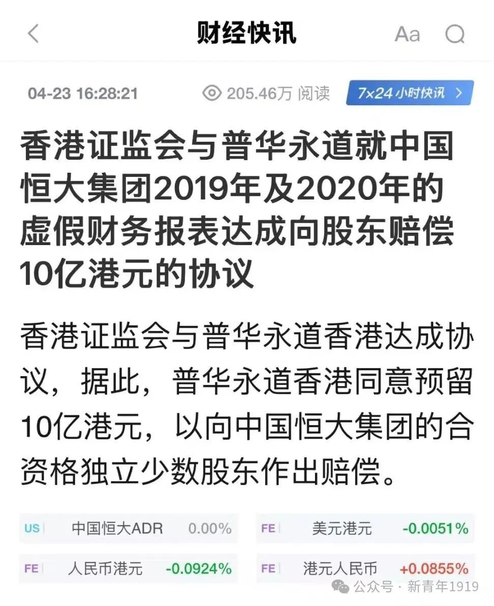 十天后,香港,普华永道被罚3亿港币,并同意预留10亿港币向恒大独立少数股东赔偿,证券时报的报道里,轻飘飘地飘过一句话,“尽管罗兵咸永道香港并不承认下述事项,但……”