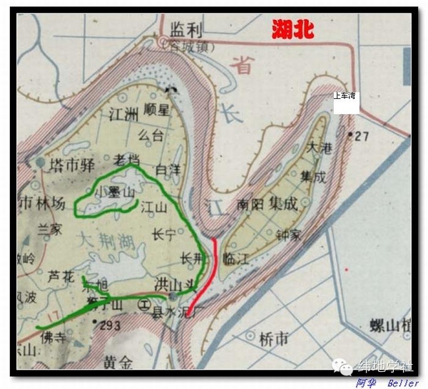 原文附图,红色部分就是农民和下乡知青一铲一铲挖出来的新长江。