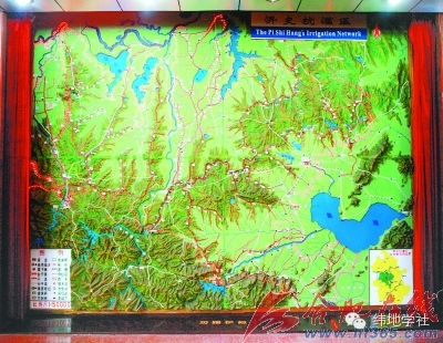 水脉图和地形图对照,可以看到这是一个结合山区水库和平原灌溉网,沟通不同水系的自流灌溉项目。这个工程主体也是靠人力和农业社会的物资完成的。五六十年代的中国也实在没有多少工业物资可投入。