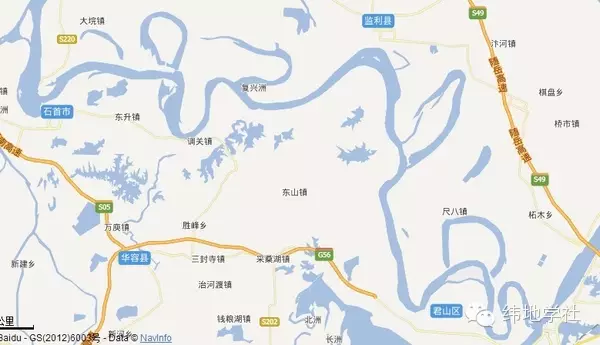 然而这还不是全部的荆江截弯工程。看下面的百度地图和卫星图: