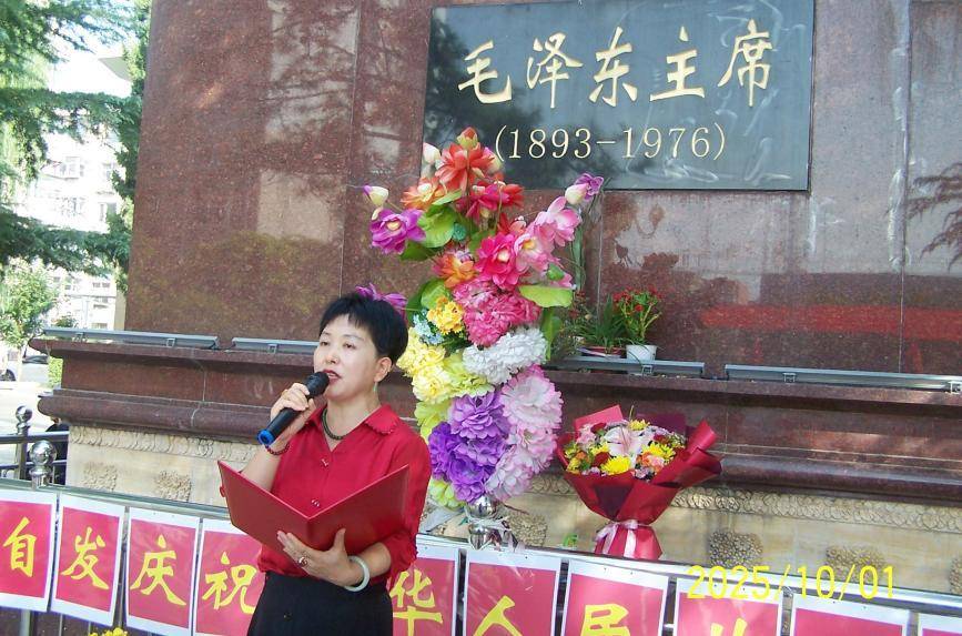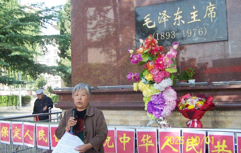 人民自发庆国庆, 主席像前来集中; 载歌载舞庆胜利, 感恩国父毛泽东! 2025年10月1日,是中华人民共和国成立76周年国庆节。 保定人民怀着对新中国的缔造者,我们敬爱的伟大领袖毛主席无限崇敬、无比怀念的心情,汇集在毛主席像前,自发举行了庆祝活动。 本组图是庆祝活动的实况录像截图、照片和发言摘要。请同志们关注、观看。 主持人周老师致辞: 尊敬的同胞们,尊敬的保定父老乡亲战友同志们: 大家好! 每年十月庆国庆,举国人民齐欢腾,吃水不忘挖井人,感念国父毛泽东。 今天,我们站在这片被毛主席深情关注的土地上、在毛主席像前,以保定儿女的赤诚,向人民的大救星毛主席,致以最崇高的敬礼! 在这喜庆的日子里、我们怎能忘记那些为国为民捐躯的英烈们,怎能忘记伟人毛主席,是他老人家领导全国人民推翻了蒋家王朝建立了新中国,让我们过上了幸福平安的好日子。 1918年的深秋,青年毛泽东踏着卢汉铁路的汽笛声抵达保定,在第一客栈留宿,为留法勤工俭学的湘籍同学们奔走操劳,后来他盛赞保定莲池书院为"清末全国书院冠"滋养了保定的精神根脉,从高里暴动的红旗漫卷,到冉庄地道站的智慧抗争,从狼牙山五壮士的纵身一跃为人民,到晋察冀边区的军民同志一心,保定人民用热血践行着毛主席他老人家倡导的革命信念,凝视着眼前的毛主席像,伟人的身影与保定的红色记忆深深交融,毛主席的一生曾多次来河北保定,与保定人民结下了深厚的感情! 毛主席的一生,是艰苦创业的一生,是南征北战为国为民操劳的一生,是为人民服务的一生,是清政廉明的一生,是为广大人民奉献的一生,是点燃星星之火,可以燎原的引路人。 毛主席是政治家、思想家、理论家、教育家、哲学家、经济家、军事家,他一心为大家! 让我们携手同心,为毛主席开创的祖国努力奋斗! 期盼回归祖国繁荣富强,人民幸福安康! 谢谢大家! 邬小径同志诗朗诵:《国庆》 今天国庆 庆祝新中国建立了76周年 激动 感动 热血沸腾 欢呼 雀跃 万里长空展翅着雄鹰 仰望长空 人民大声倾诉着心声 吃水不忘挖井人 是伟大领袖毛主席 指挥千军万马 击碎敌军万千重 冰山是胜利前的画版 雪地是号角的起源 您的心愿 让中国人民当家作主人 您的愿望实现了 伟大领袖毛主席 在您的领导下 人人平等 没有权贵欺压老百姓 那时的天空 就是纯洁的心灵 洁白无瑕 那时的日子 蒸蒸日上 如火一样的红 那时的人们 满脸都是灿烂的笑容 互帮互助 共同进步 这才是幸福的人生 人民永远把您纪念 伟大领袖毛主席 中国人民最大的心愿 期盼您老人家重返人间 2025年10月3日 |