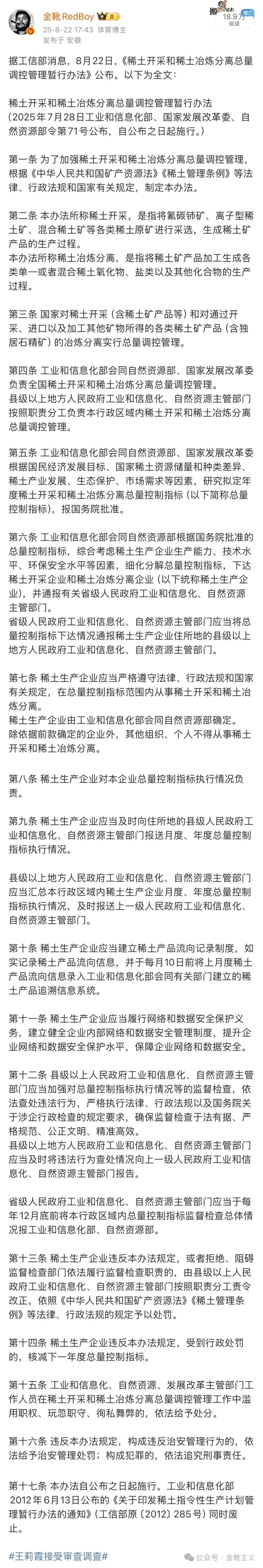 10月9日,我国商务部发布文件,首次明确了最终用途为研发、生产14纳米及以下逻辑芯片或256层及以上存储芯片,以及制造上述制程半导体的生产设备、测试设备和材料,或者研发具有潜在军事用途的人工智能的稀土物项出口申请,将实施逐案审批。 早在今年4月,商务部和海关总署就已对钐、钆、铽、镝、镥、钪、钇等七类中重稀土相关物项实施出口管制措施,本月9日的措施为进一步升级,将剩余五种中重稀土元素也纳入出口管制范围,实现了对军工、半导体领域有关键用途的原材料出口管制全覆盖。 毫无疑义,划时代的历史首次。 这是我国第一次以稀土的最终用途为标准来限制稀土在半导体产业的应用,限制形式完全“效仿”美国商务部此前对中国划下的技术出口限制红线——整整三年前,美国第一次对中国半导体产业链进行全面出口管制,其中对于先进制程芯片划定了三条线:16纳米或14纳米或以下,非平面晶体管架构(即FinFET或GAAFET)的逻辑芯片;半间距不超过18纳米的DRAM(动态随机存储)芯片;128层或更多的NAND(非易失性存储)芯片。 以彼之道,还施彼身。 1 稀土包含一系列化合物,概念广泛,半导体供应链从上游的原材料、设备,到中间的生产制造流程都会用到一些稀土化合物。 例如鼎鼎大名的荷兰光刻机公司阿斯麦最先进的EUV光刻机的光源系统就需要用到至少两种稀土元素的化合物,以及先进存储芯片采用立体堆叠,一些稀土化合物可以在不同层间起到绝缘的作用亦十分关键。 所以包括阿斯麦在内的西方尖端科技、国防军工相关企业的出口申请必然遭到冲击。 9日我方的公告中明确表示: 不予批准境外军事用户的稀土出口申请;对于中国出口管制管控名单和关注名单所列的进口商和最终用户的稀土出口申请,以及名单所列企业持股50%及以上的子公司、分公司等分支机构的稀土出口申请,原则上也不予许可。 稀土因其独特的光、电、磁等特性,被广泛应用于电子、信息、通讯、能源、汽车、航空航天等领域。 具体看,稀土共有十七种元素,按萃取分离工艺的要求,业界通常把这些元素分为轻稀土和中重稀土。 其中,轻稀土包括错、钕等资源丰度较高的元素;中稀土包括钐、铕、钆、铽、镝等元素;重稀土则包含钬、铒、铥、镱、镥、钇等高价值元素。 我国今年两次出台稀土出口管制,已将十二种中重稀土元素全部纳入出口管制范围。 轻稀土和中重稀土的一大差别就是,中重稀土能明确用在导弹跟踪卫星的定位当中,若海外中重稀土供应出现扰乱,或将影响到欧美国家的军工扩张规划。 而我国的中重稀土资源占全球总量约80%。 稀土经过提取、分离、治炼、合金化等工艺后,被制成下游市场更为熟悉的稀土永磁材料,后者又分为钐钴和钕铁硼体系—其中,钐钻耐高温性更好,主要应用在军工领域;钕铁硼具有更高的磁能积,市场需求不断增加,是稀土永磁需求量最大的产品,在消费电子、电动汽车等产品中都有使用。 就美国而言,稀土永磁材料不仅是包括F-35闪电II战斗机、弗吉尼亚级潜艇以及无人机在内的一系列国防能力中的关键组件,也是美国商业应用中的重要组成部分,被运用在电动汽车、光纤通信系统等,还被用于为飞机上的电子系统发电,并在雷达系统中聚焦微波能量。 以军工为例,一架F-35战斗机需要超过447公斤的稀土元素;每艘阿利·伯克级DDG-51驱逐舰需要约2.5吨的稀土元素;一艘弗吉尼亚级潜艇则需要约3.6吨的稀土元素。 除了潜艇和战斗机,由稀土元素生产的磁铁还用于战斧导弹(近来俄罗斯正就美国会否给予乌克兰战斧导弹而抗议)、各种雷达系统、捕食者无人机以及联合直接攻击弹药系列智能炸弹等系统。 此外,铽可为钕铁硼(NdFeB)磁体提供更高的温度适应性,该磁体用于多种关键国防系统,包括飞机、潜艇和导弹。 由于铽在大多数矿床中占稀土总含量的不到1%,这也是最难获取的元素之一。 所以早在今年4月份我方对七种中重稀土实施出口管制后,海外军工企业已有所反应。 如洛克希德·马丁公司彼时在一份声明中称: 公司持续评估全球稀士供应链,以确保获得支持客户任务的关键材料。有关稀土供应链的具体问题,最妥善的是由美国政府来解决。 早在六年前,美国陆军杂志就在一篇文章中曾提到: 洛克希德•马丁公司正在研发一种小型高功率激光武器,这种武器主要依赖稀土元素铒和钕;美国空军研究实验室的计划是2021年前在一架战术战斗机上进行测试。 不过颇为搞笑的是,该文章还指出: 实际上,在中国这些最新出口管制措施出台之前,美国国防工业基础就已面临重大挑战,美国国内生产能力有限,难以迅速扩大规模以满足日益增长的国防技术需求,新的稀土管制措施不过是加剧了这些脆弱性。 2 这次“稀土战争”爆发的前因,是美国近期分别以穿透管制实体清单、加压高科技出口、对华航运造船加征高额税费等进一步挑战中国承受力,从而催使我方此次以罕见的组合拳反击,祭出稀土、高端锂电等物项出口管制升级,以及对涉美船舶收取船舶特别港务费。 其实稀土之所以成为战略焦点,其根源在于全球供应链的极度集中化,形成了一个以中国为绝对核心的“单极”格局。 这种格局不仅体现在上游的矿产资源,更关键的是在中游的加工精炼和下游的高附加值应用环节。 根据去年的最新数据,全球稀土氧化物储量约为9000万吨 。中国的稀