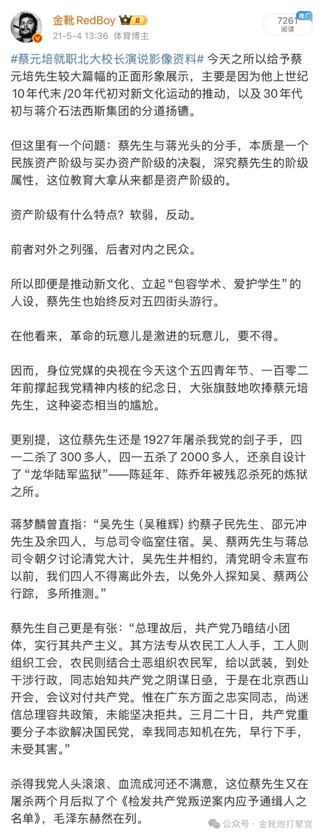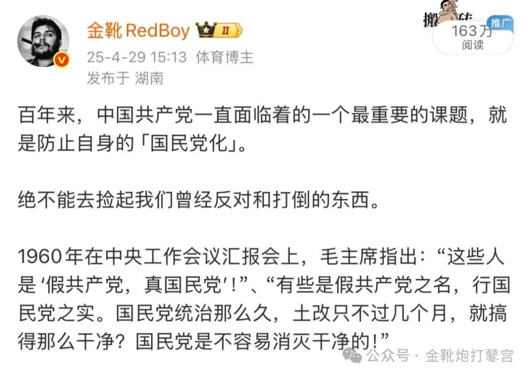 列宁在1919年时曾有这样一段演讲: 资产阶级的虚伪表现之一,就是相信学校可以脱离政治,你们都清楚地知道这种想法多么虚伪。提出这个原理的资产阶级自己就把资产阶级政治放在学校事业的第一位,竭力把学校用来专门替资产阶级训练恭顺的和能干的奴才!甚至竭力利用普遍教育来专门替资产阶级训练资本的走卒和奴隶,他们从来不想使学校成为培养人格的工具! 学校不仅仅是学习知识的,更是一个学习“知识应当如何使用、为谁使用、为谁掌握”的政治大讲堂。 正像《人民日报》1966年8月2日著名社论《全面贯彻毛主席伟大教育思想的典范》中的教导号召: 阶级斗争是青年的一门主课,青年应该把坚定正确的政治方向放在第一位。 教育系统的深府高台、讲坛之上的滔滔师者、教材教具的政治方向,这三个核心要素内藏的一众污秽沉垢,多年来已孵化培育了两代不止的数量庞大的逆向民族主义精英。 经年累月以来,他们深入、把控、拥持着国家各行业部门的权重宦位,其根子都是在于教育紊乱。 早在1955年5月,主席就曾觉察到: 许多人认真一查,查出了他们是一个不大不小的集团。过去说是‘小集团’,不对了,他们的人很不少。过去说是一批单纯的文化人,不对了,他们的人钻进了政治、军事、经济、文化、教育各个部门里。 两年后情况愈发复杂,主席再发警告: 如果我们和我们的后代不能时刻提高警惕,不能逐步提高人民群众的觉悟,社会主义教育工作做得不深不透,各级领导权不是掌握在真正的马克思主义者手里,而被修正主义者所篡夺,则我国还可能要走一段资本主义复辟的道路。右派的企图,先争局部,后争全部。先争新闻界、教育界、文艺界、科技界的领导权。他们知道,共产党在这些方面不如他们,情况也正是如此。 就在那两个月前,主席还郑重致信过周恩来、陈云、彭真、陆定一,要求: 大学、中学都要求加强思想、政治领导和改进思想、政治教育,要削减课程,要恢复中学方面的政治课,取消宪法课,要编新的思想、政治课本,要下决心从党政两系统抽调几批得力而又适宜于做学校工作的干部去大、中学校工作,要赋予高等教育部和教育部以领导思想政治工作的任务。 今日一切乱象的背后,都是历史深处意识形态的失序和政治火炬的熄灭。