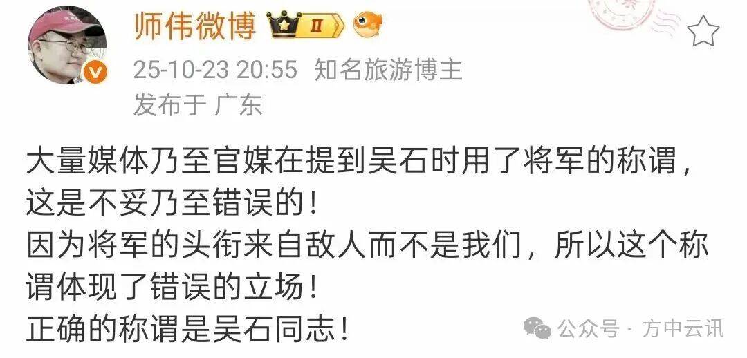 显然,吴石是我党优秀的地下工作者,其身份掩护是“国民党国防部参谋次长(中将军衔)”。 也就是将军的称谓来自在国民党潜伏身份、是国民党授予的。 所以在他没有暴露时我们是可以称他为将军的。如今身份明确了、碑也立了、像也雕了,现在怎么还把他叫将军? 这岂不是站在国民党的立场上? 所以吴石的正确称谓是同志!