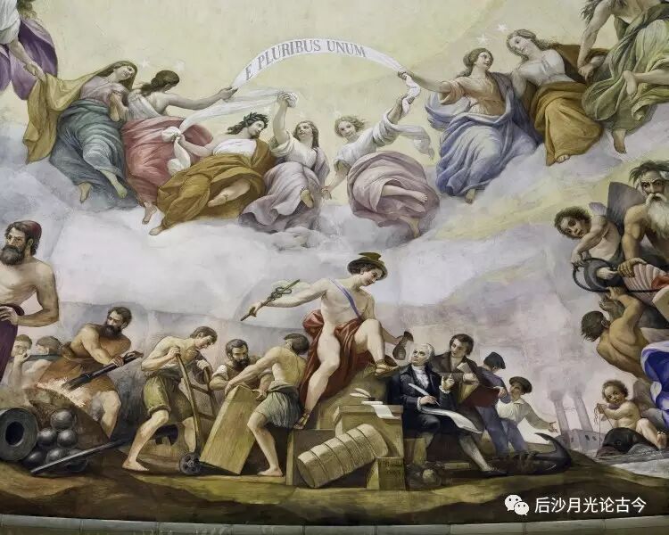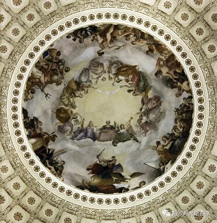 如果你有机会去美国观光,到了国会大厦圆型大厅,也得抬头去看,去拍上面这图。