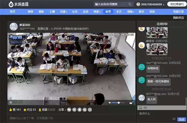 上课打瞌睡,偷吃零食,换座位……学生以为侥幸躲过了老师的监视,不想这些画面早已被无数人看到。对准学生的摄像头,持续不断地将课堂活动同步到水滴直播上,来自全国各地的网友可不受限观赏,实时评论,还可以打赏。 据报道,4月25日,记者打开水滴直播网站,在教育频道中,显示有280个直播台,涉及:江苏、北京、河南、安徽等多个省份,直播内容包括从幼儿园到高中毕业班,甚至课外辅导机构、才艺培训班等。 直播场景多为教室,也有走廊、食堂、操场,甚至还有学生宿舍等。直播过程中,基本上音画同步。 此外,还有不少辅导机构在直播群聊中推广课程及联系方式。 在一个名为“2014级高三(12)班”的直播台,截至4月25日共获得870个点赞、198人关注,有将近3万人观看。其直播位置显示在河南许昌市。 25日15时30分,进入该直播台。根据画面显示,直播摄像头位于教室黑板正上方,视野覆盖整个班级,画质清晰度较高。 此时,正值课间休息,学生在教室内自由活动,课桌上堆满了书本。到晚上8点,直播还在进行中。 与此同时,实时直播弹幕一直在屏幕上滚动。记者查阅直播群聊区发现,第一条评论是2016年12月18日发出的。其中一个名为“132……87”的用户在3月30日评论,“这个班级我看了两个月,谁和谁熟悉,谁和谁谈不来,还有谈恋爱的,我都知道。” 此事引起了网友讨论,有人认为这已涉嫌侵犯个人隐私,“就算是为了监督学生,向公众直播,也太不顾忌学生隐私了。” 而部分家长则觉得这样很好,能时刻关注孩子在学校的情况,感到踏实。 其实,教学能够利用科技的优势,让技术服务于教学工作,本是一件该拍手称好的事。但是,现在却引起了轩然大波,说到底还是使用过程中没有把握好一个“度”的问题。 幼儿园、中小学课堂将画面发送给指定的家长,这是不少中小学的做法。很多家长担心孩子不好好听课,或者授课老师不好好讲课,甚至可能对自己的孩子有非正常举动,比如过度体罚、猥亵等。所以,他们会要求学校在教室安装直播软件,以便随时看到孩子的情况。 但是对于未成年人,若没有取得监护人得同意,就将课堂行为直播出去,既侵犯了学生的隐私权,也损害了监护人的监护权利。 学校作为直播主体不能随意而为,应该有细致考量和专门管理,更不能将学生信息公之于世界。首先,要征得他们的同意,其次监督理应限定范围,不能涉及宿舍这种隐私性强的场合。 但是,宿舍作为学生相对私人的活动空间,在未经本人同意,就将其暴露在网络上,无疑是对学生隐私的极大不尊重。 一些学校在直播的时候,并不只是针对学生家长直播,而是公开直播。很多学生的相貌、衣着、行为举动完全暴露在陌生人眼里,如果被一些心怀不轨者盯上,就极有可能会危及人身安全。尤其是对未成年而言,因为防风险能力较弱,他们更容易陷入危险。
