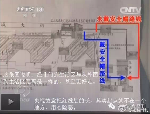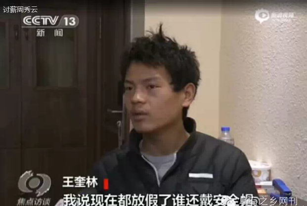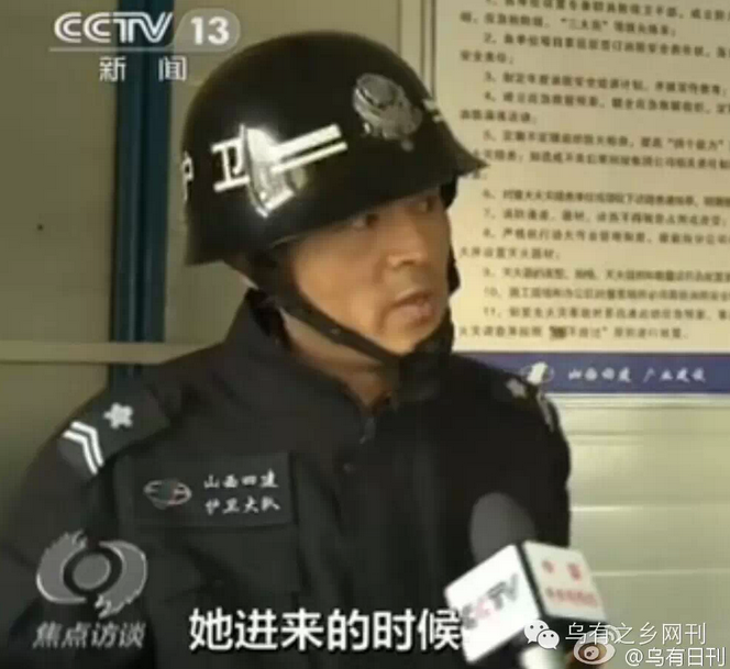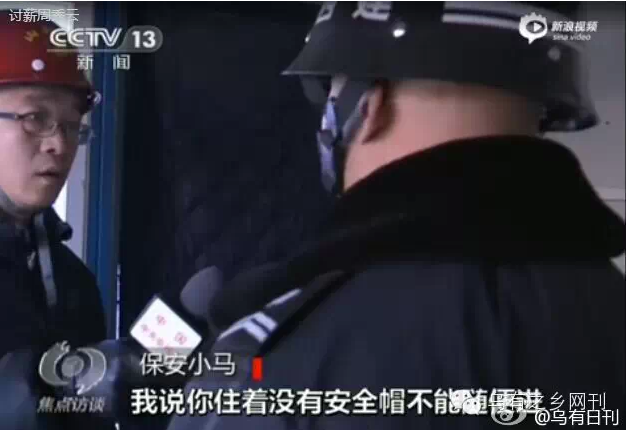 周秀云家属和律师一直以来坚定地陈述这是一起民工讨薪,被警察暴力弹压致人死亡的事件。而一种声音说,此次事件与讨薪无关,就是一起要不要戴安全帽进入工地引发的治安事件,把部分责任推到了受害者及其家人身上,转移焦点,并模糊处理警察打死人的关键点。 1月29日焦点访谈做了一期节目,节目视频广为流传,题为《周秀云案全程监控 女民工阻碍执法被警察打死》。这期节目由敬一丹主持,明确支持了后一种说法,即周秀云事件因其子不戴安全帽想进入工地引发,而民警到现场后处理失当引起当事人抗拒,现场的暴力执法和事后到派出所殴打报复导致周秀云死亡,家属受伤。 焦点访谈视频一出,网络中一大堆人跳出来高喊舆论已反转。他们把受害者周秀云骂成泼妇、刁民,指周秀云儿子为“任性”的“富二代”,又说周秀云的反抗是“袭警”,警察应该现场击毙。 这些舆论的出现,代表着中国当代城市小资产阶级的两面性,即惧怕大资本和公权力,又歧视更底层的劳动者。对此不必赘述。 值得探讨的是,这期焦点访谈难道真的客观中立,反映了事情的原貌吗?其实不然。这期焦点访谈刻意剪切拼凑,断章取义,有意省略关键,是不折不扣给警方洗地的视频。让我们就着视频,一幕幕地分析。 视频一开头就给出了“非正常死亡事件”的说法。在法医鉴定未出来之前,这种说法貌似客观。但其实纵观整个事件,周秀云受到警察暴力对待致死是毫无疑议的。视频对“非正常死亡事件”不置可否,给舆论做文章留下了空间。 视频中强调了该项目是国企承建项目。于是有网络评论跳出来,说国企施工如何正规,暗示安全帽有更严格规范,或不存在讨薪矛盾。例如: 一个“正规”的国企施工现场,为何会雇佣没有签署合同的农民工呢?这无非说明了一个现象,管它国有不国有,现在的开发商,承建商和施工队都在违法不正规地雇佣农民工,为的是降低工资和保险开销,提高利润。“正规”说明不了更安全、不欠薪,只能说明更无耻。 这一段,焦点访谈旁白说:“王奎林和几位工友外出购物回来,想穿过工地回驻地时,遇到了保安的阻拦。” 从这一段开始,这期焦点访谈重复地在做一件破绽很明显的事情,就是涉及矛盾冲突时,引用保安的说法,路人的说法,警察的说法,却完全不引用工友一方的说辞。本该形成“对质的语境”,被巧妙地转化成了不易引起人注意的“陈述语境”。 让我们看看此前王奎林接受网友陈琴专访时的说法: 问:这里,没有【10余名河南籍民工准备于次日返乡,需回住地整理行李】等内容,而是变成了【走近路】,对此你怎么看?答:说我们【准备于次日返乡,需回住地整理行李】太荒唐,因此太原市政府新闻办1月16日的通报里就没有这些内容了。说我们要【走近路】之类真是无稽之谈,我们是要进去问工资到底啥时候能给我们发,在街上我们就商量回去早点,去项目部问工资,完全没有走近路回宿舍的意思。如果没有欠薪问题,我们根本不会因为所谓的“走近路”没戴安全帽问题与保安产生那么大的争执。(参见:太原官方的通报自相矛盾--王奎林再谈“周秀云死亡案”的真相) 工友的观点很明确,“戴安全帽”只是保安阻拦讨薪的一个托辞。焦点访谈想要调查清楚这个问题,第一步自然是摆出双方的观点,然后寻找证据。可工友的观点完全被节目抹消了。抹消了之后,自然也可以偷偷地含混过去,不必对质细节了。 这一段采访的拼贴,把保安和王奎林的对话,都局限在“安全帽”上。效果很不错,但破绽也特别明显。那就是王奎林接受央视采访时,无论任何一种原因,他都必然会说进去是为了讨薪。而王奎林讨薪这个动机描述,被焦点访谈给刻意删除了。随之删除掉的,自然还有工友的基本观点:戴安全帽就是个阻碍讨薪的说辞。 焦点访谈这一段摆拍了工地安全帽提示,背景声音是“请戴好安全帽”。 为什么说是摆拍?因为视频里也反复提到了,工地已经停工良久。 这一段旁白说:“这是一个国有建筑企业的工地,工地管理比较规范。”暗示戴安全帽是管理比较规范的一部分。 但这一段又有两个破绽。第一个破绽,上文提到了,工地雇佣的仍是不给保险不给签订正规合同的农民工。这已经说明了所谓的“规范”毫无意义,这就是一个不按劳动法雇佣农民工施工的工地,凭什么说规范? 焦点访谈为摆拍效果,特地让涉事保安一身正装穿戴安全帽出场。 比如这样: 比如这样: 比如这样: 焦点访谈让保安穿戴标准接受摆拍的效果适得其反,恰恰反衬出了保安当时着装毫不正规,安全帽只是托辞而已。 且现场工友手机视频里,可以看到保安室内就有一柜子的安全帽: 这些安全帽不仅保安自己没有佩戴,也不让执意要进工地的工友佩戴。这进一步说明了让不让进工地的矛盾起因和安全帽无关,否则早就可以通过安全帽来解决。 另一个被焦点访谈忽略的观点是,周秀云死亡事件发生在12月13日,在此前一天,12月12日,王友志班组13人已经到项目部讨薪过——而这一次,安全帽完全没有成为问题: 问:2014年12月12号(12•13命案的前一天)王友志班组13个农民工进工地项目组办公室讨要欠薪时是否带了安全帽?答:12号去项目部没有戴安全帽,我们和四川工友一起去的,四川工友也没戴安全帽。由于是放假期间人员外出从常理上讲 是不会戴安全帽的。所以13号保安以未戴安全帽为由阻止我们进入的行为
